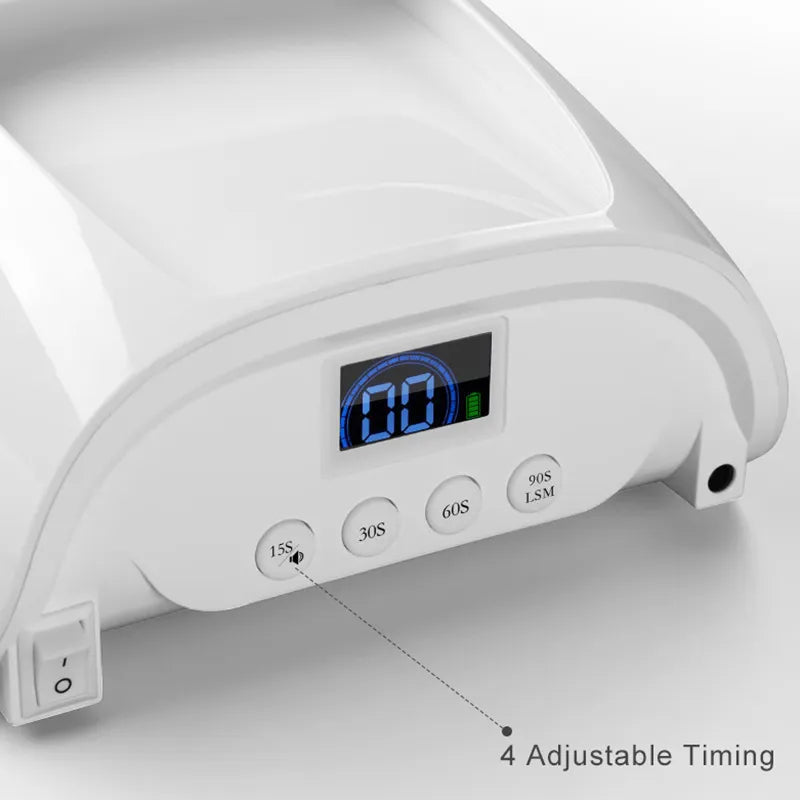 The H80 Cordless UV/LED Nail Lamp delivers 96W of curing power with 36 premium beads for quick, even results. Featuring 4 timer settings (15s, 30s, 60s, 90s) and infrared smart sensing, it is a smooth manicure experience. Its removable base makes cleaning easy, while the recessed grip design adds comfort and convenience for portable use.