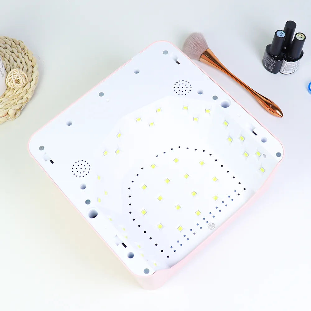 The X90 Nail Lamp delivers powerful, customizable curing with advanced features. Its 39 high-performance LED beads at 86W ensure fast, even drying for all gel types. A 9600mAh battery provides long cordless use, while adjustable power via the rotary knob gives greater control. With 45s and 90s timers, infrared sensor activation, and a detachable base for easy cleaning, the X90 offers both efficiency and comfort for salon or home nail care.