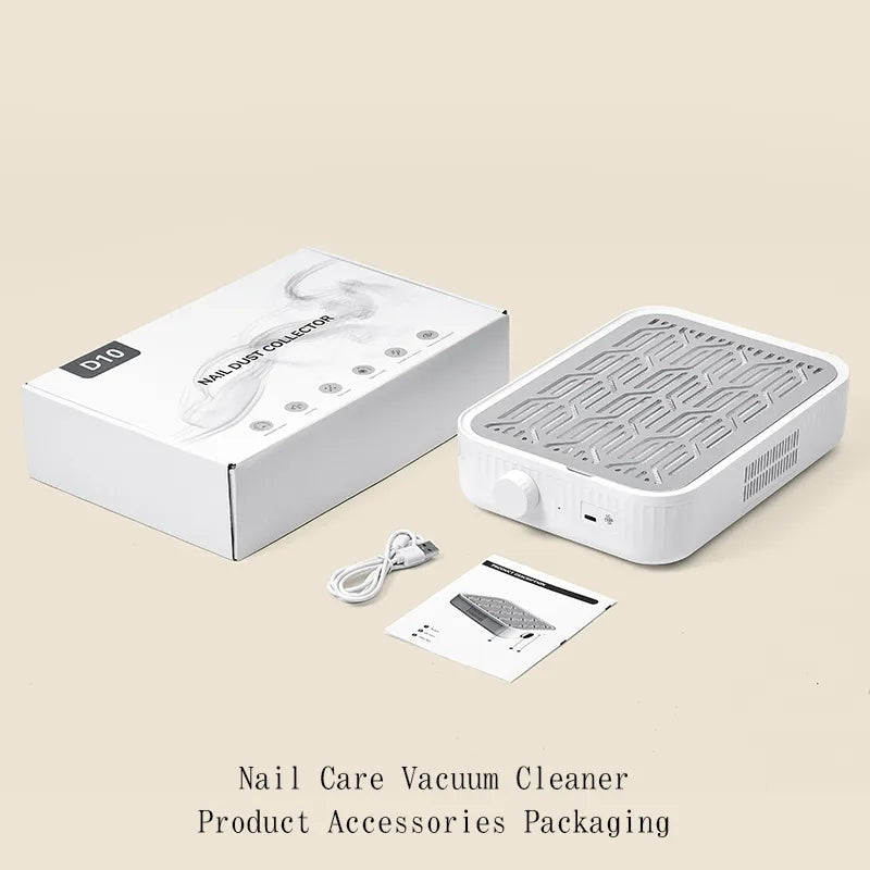 D10 rechargeable nail art dust collector combines high power with fashionable design, making it an essential tool for creating a clean and professional nail art experience. It is equipped with a powerful 48W motor, high speed, efficient vacuum while maintaining low noise. With a 4500mAh battery capacity, it ensures wireless battery life. Made of aluminum alloy and ABS material, it is durable and available in two fashionable colors: white and pink.